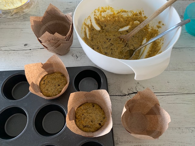4) Ora con l’aiuto di un cucchiaio riempite i pirottini : all’incirca ne metterete un paio di cucchiai per ognuno e otterrete 6 cupcakes.