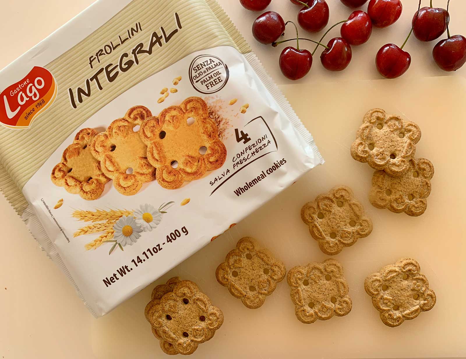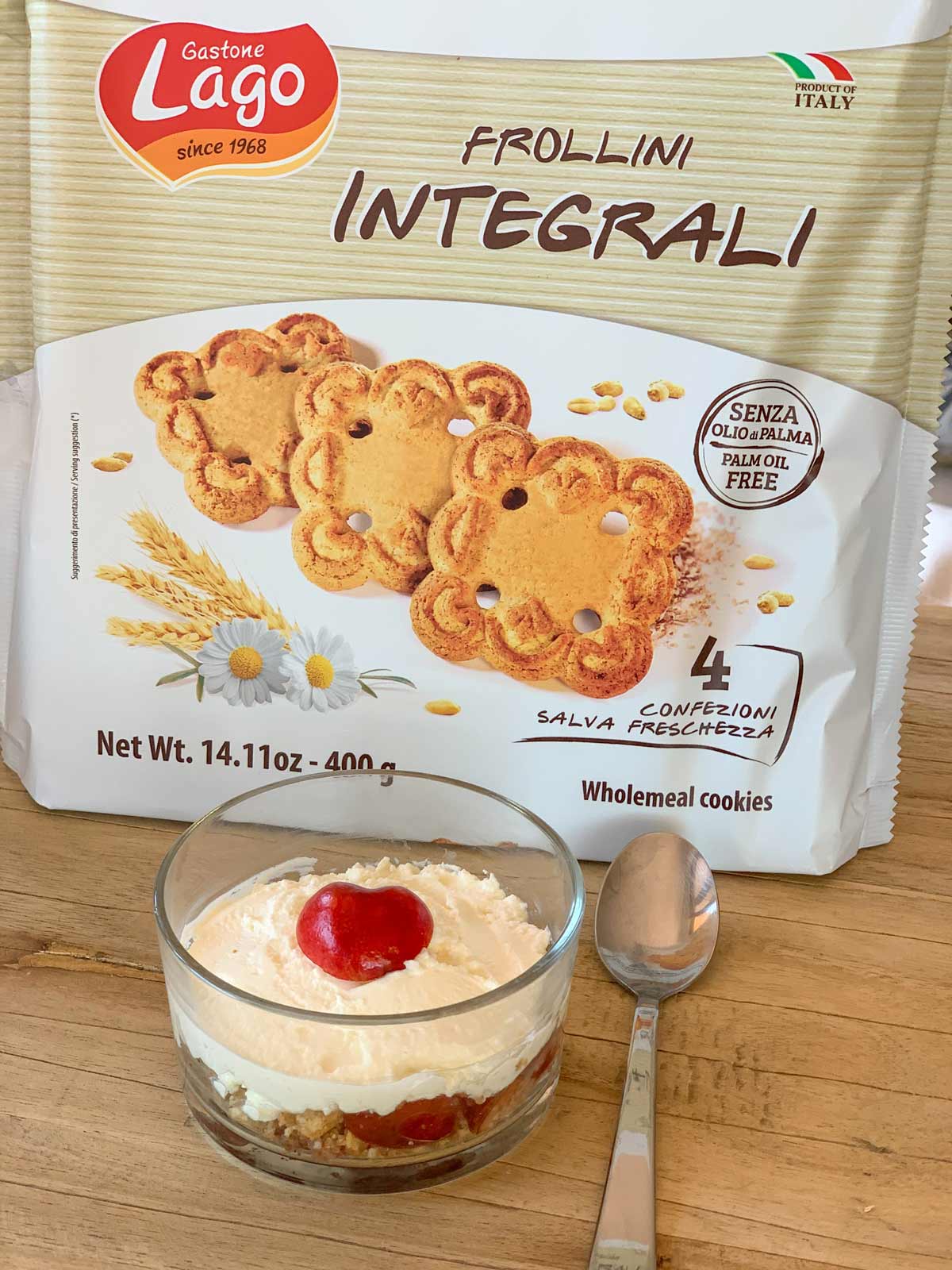 Ho scelto i Frollini Integrali Lago perché sono realizzati con ingredienti altamente selezionati, non contengono olio di palma e sono buonissimi! Li mangiamo sempre a colazione e sono l’ideale per questa ricetta.